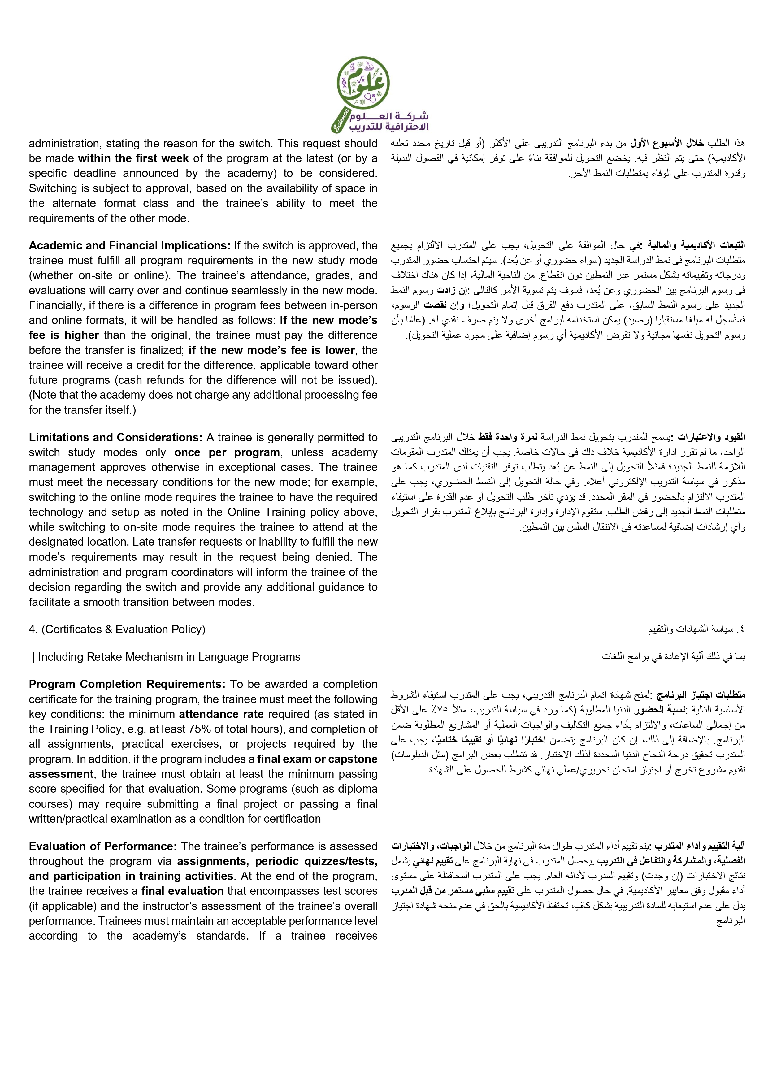 · عند الضرورة، يحق للإدارة تأجيل عقد برنامج تدريبي مدة لا تزيد عن أسبوع، وتلتزم بإخطار جميع المتدربين بذلك.